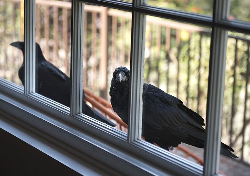Since their first meeting, James has come to tap on their windows an average of 8 to 10 times a day. In response, Brickhouse will bring out food -- sometimes on a silver platter, which is sometimes filled with eggs poached by Chaiken. But the relationship between these birds and humans is far more than culinary. James will sit with Brickhouse on the porch as she's reading The New York Times. He chases coyotes away from the property. And when accepting food from Brickhouse, James will bow his head.