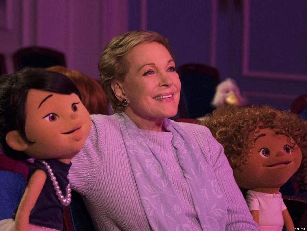 Andrews may be one of the world's most famous actresses, known for classics like Victor/Victoria, The Sound of Music, and Mary Poppins. But for a moment, this renowned star was upstaged -- by one of her show's puppets. The crew of plush kids created by Jim Henson Company's Creature Shop included a character, Riley, who is gender-nonbinary, a historic act of LGBT inclusion in children's television.