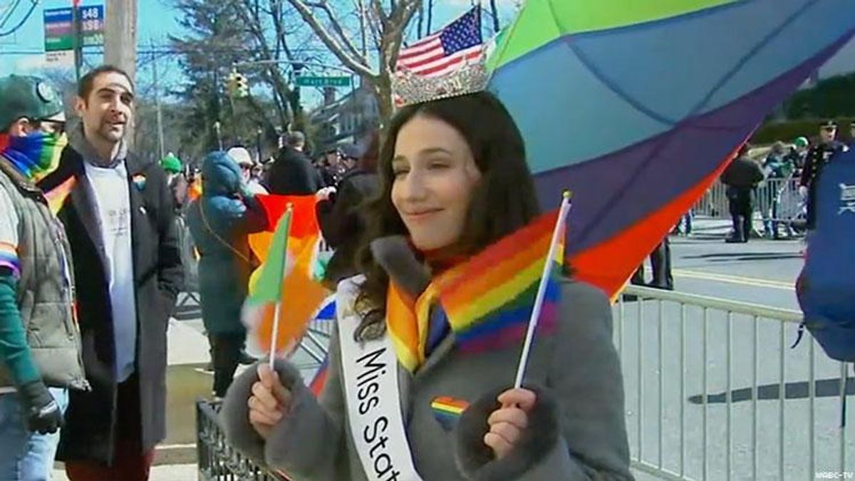 Madison L'Insalata was informed Saturday night -- hours after coming out as bisexual -- that she and another pageant supporter would be prohibited from marching in the annual celebration of Irish heritage.