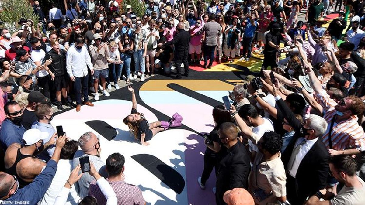 On Sunday, Gaga made a surprise appearance at the Abbey in West Hollywood to honor the gay bar's 30th anniversary. In turn, the city honored Lady Gaga with a rainbow street mural on Robertson Boulevard, outside of the Abbey, and a declaration that May 23 will be Born This Way Day.