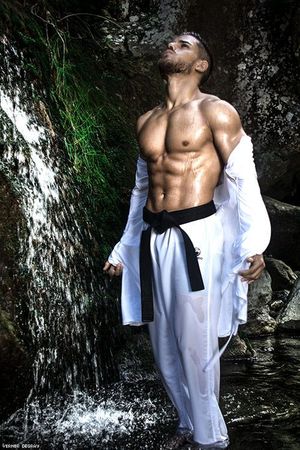 Verner tells us that his model Alex was completely at ease, stripping down and warming his bare flesh in the sun. He was delighted to show off his martial arts postures.