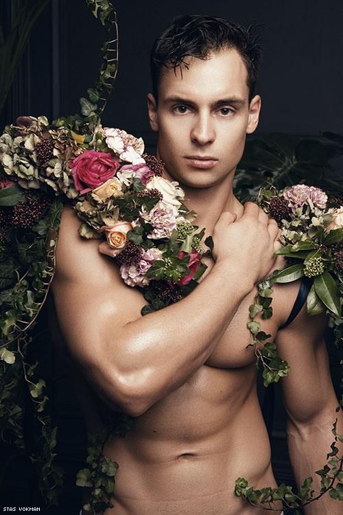 Nothing says spring like a nearly naked model draped in flowers. Model Vladimir Momotov (follow him on Instagram here) also twirls his cape in some sexy toreador action. Not sure what that has to do with spring. Not sure we care.