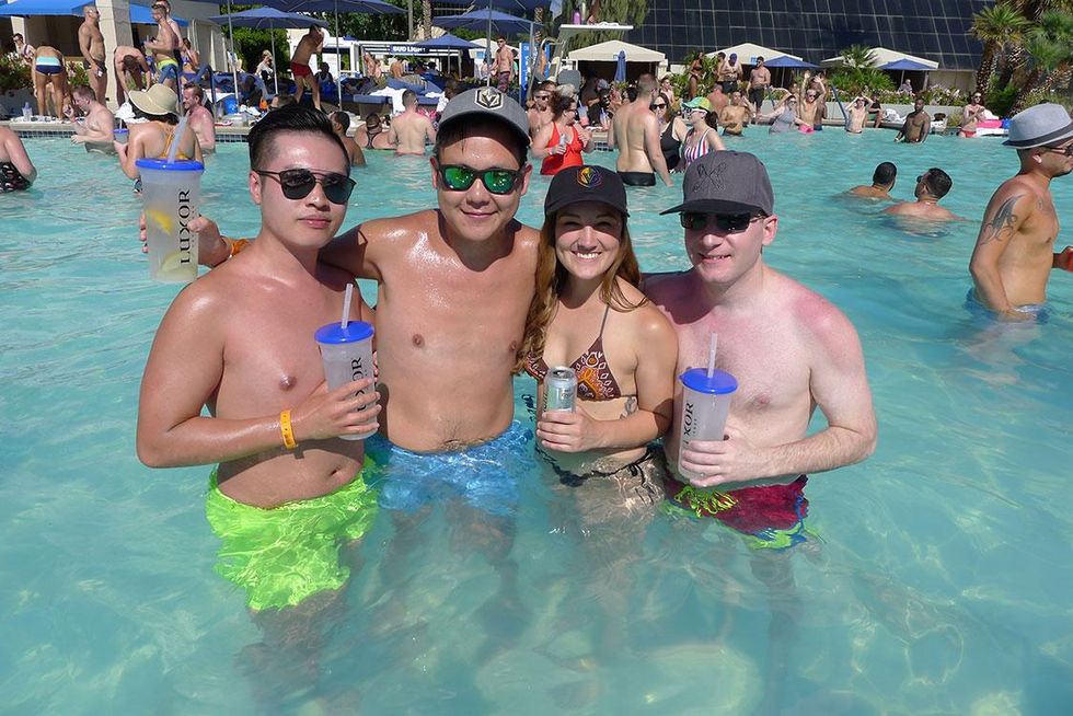 Hundreds flocked to the north pool at the Luxor Hotel & Casino for the pool party, which marks the unofficial start of LGBTQ summer in Las Vegas.