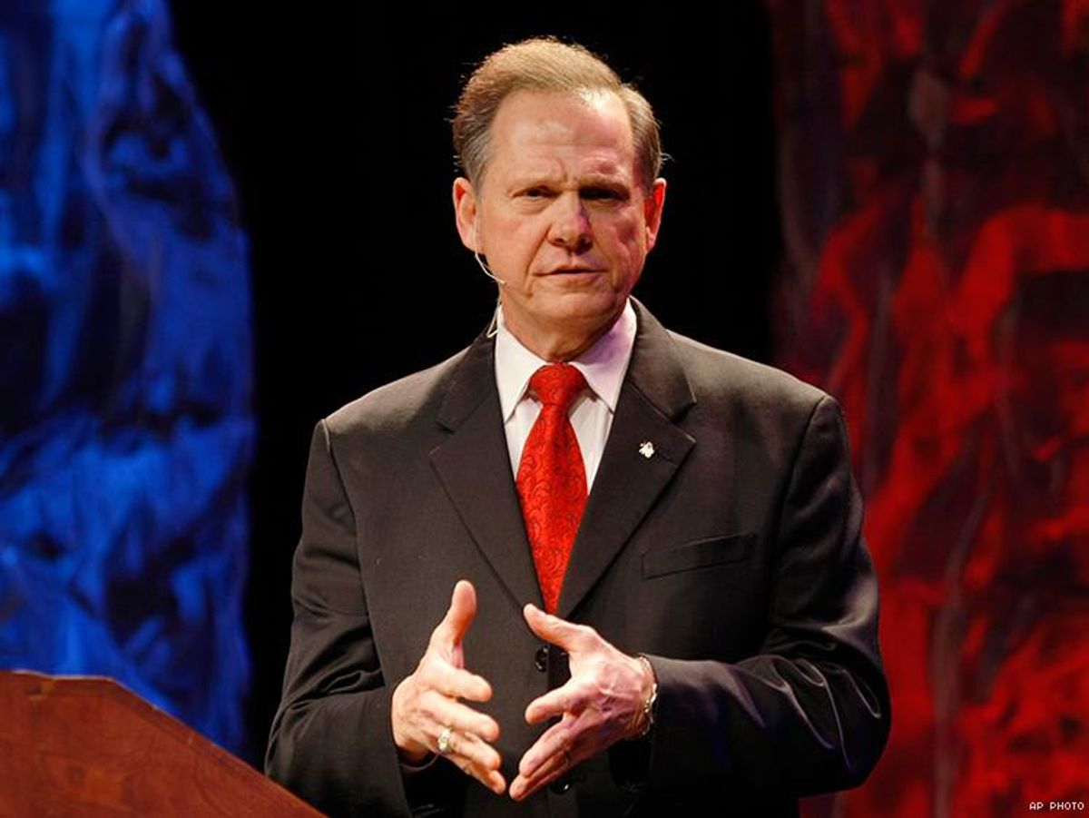In other Roy Moore news, the Foundation for Moral Law -- of which he was once president, a post now held by his wife, Kayla -- has filed a friend-of-the-court brief with the U.S. Supreme Court supporting the Colorado baker who refused to provide a cake for a same-sex couple's wedding. The brief argues that the owner of Masterpiece Cakeshop had the right, under the First Amendment guarantee of freedom of religion, to deny the couple's request.