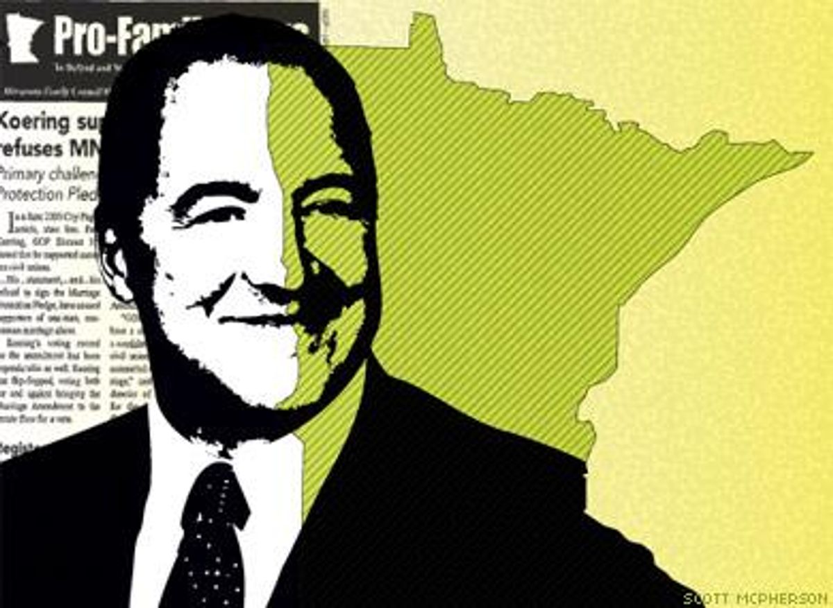 Activists called the 44-year-old an "Uncle Mary," and his office in St. Paul was slammed with angry e-mails. But few of his critics knew that Koering voted against forcing a senate vote on a constitutional amendment banning same-sex marriage in 2005. He was the only Republican to do so. A few days later, he came out-and has been vulnerable ever since.