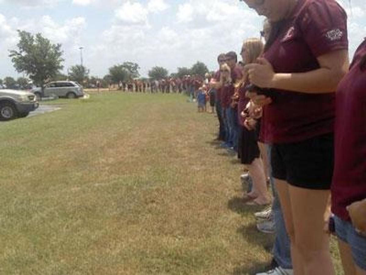 Texas Governor Rick Perry has commended 650 members of the Texas A&M community who organized a human shield to block Westboro Baptist Church antigay protesters at the funeral of Lt. Col. Roy Tisdale.