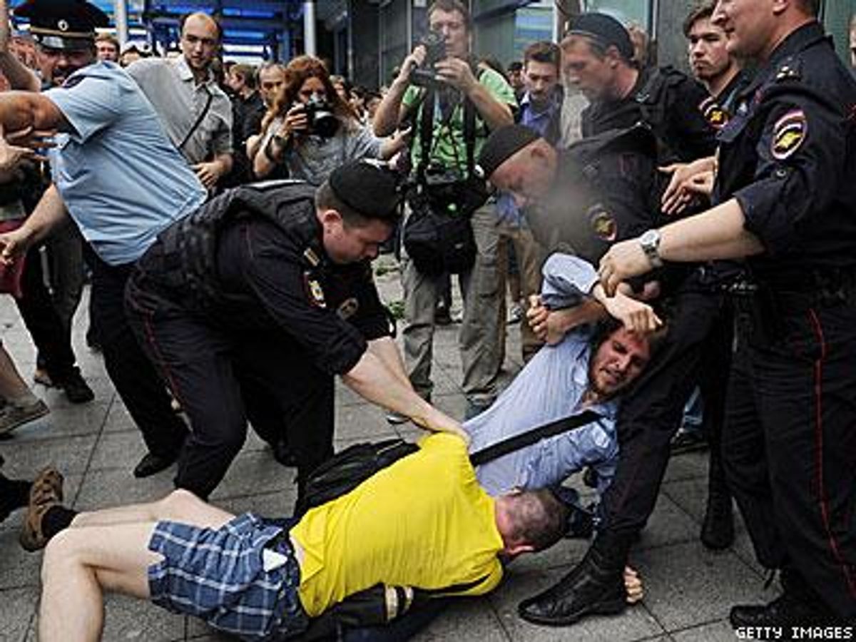 The scene mirrored events from earlier this year. In January, Orthodox Christian protesters threw objects LGBT rights advocates who were protesting the State Duma's preliminary approval of the bill. Nonetheless, when police intervened, most of the roughly 20 demonstrators they detained were from the LGBT group.