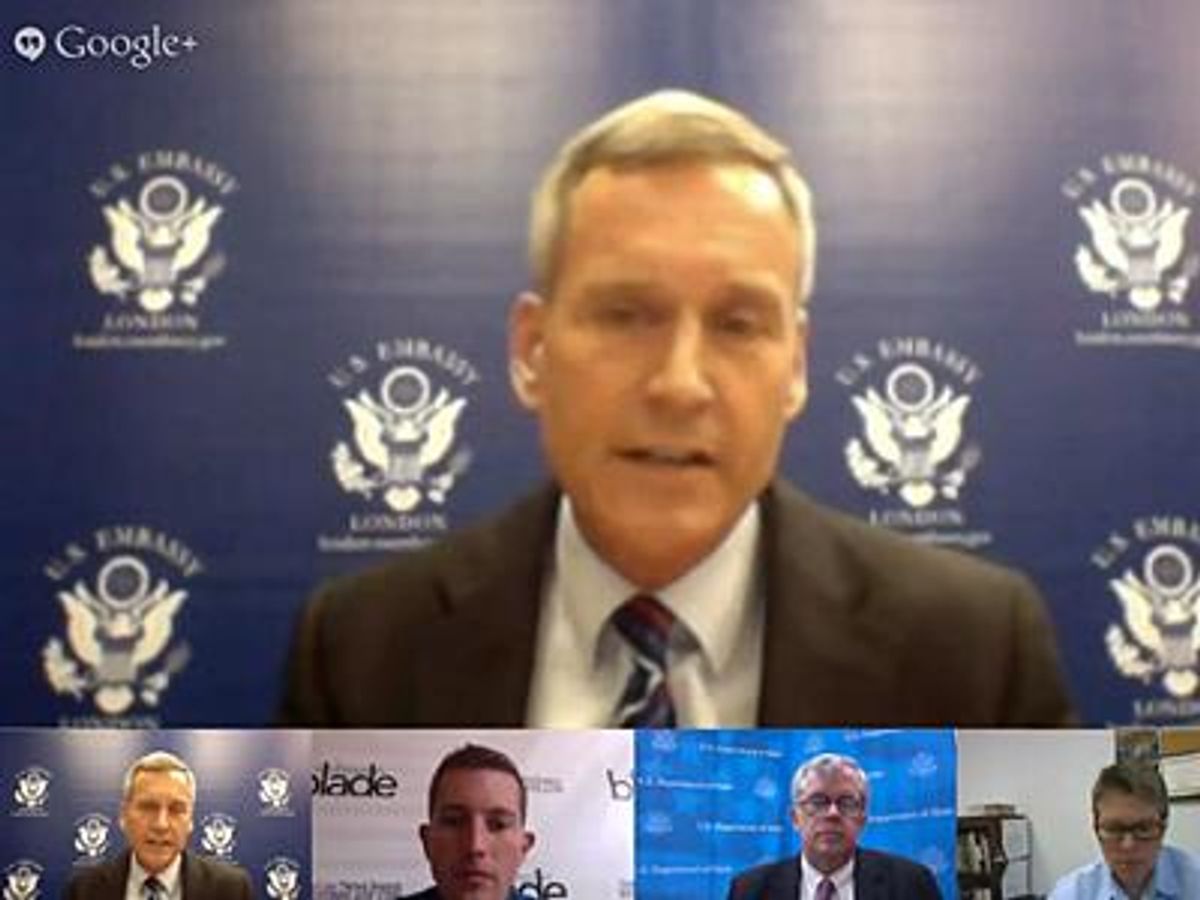 The Washington Blade's White House and chief political correspondent, Chris Johnson, served as the moderator for the half-hour question-and-answer session, which also featured David Stewart, Consul General of the U.S. Embassy in London; Don Heflin, Managing Director of the State Department's Visa Office; and Victoria Neilson, Legal Director of Immigration Equality.