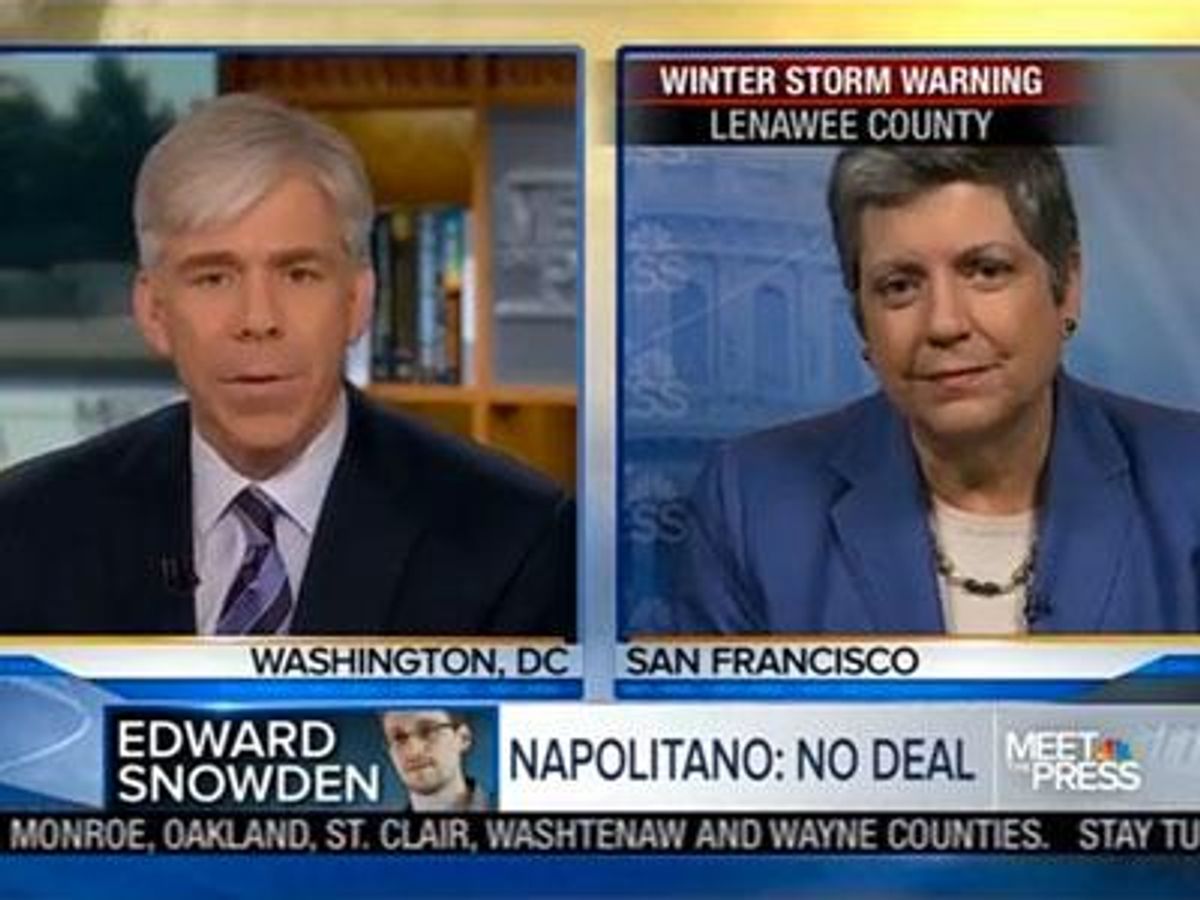 Newly appointed U.S. Olympic delegate and former secretary of Homeland Security Janet Napolitano sat down with David Gregory on NBC's Meet the Press Sunday to discuss the 2014 Winter Games in Sochi, Russia. The brief discussion touched on Napolitano's "evolving" views on LGBT rights, but centered on security as a recent series of suicide bombings shook Russia, killing 34 people in December.