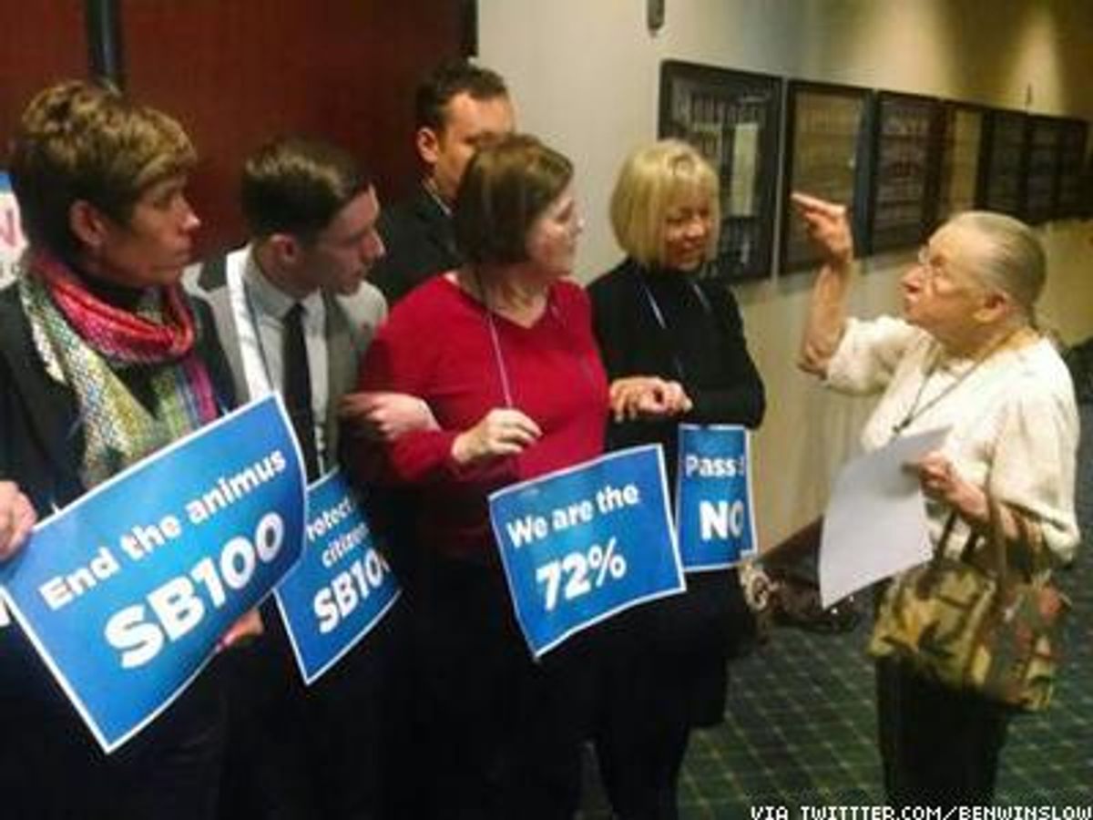 Legislators from both sides of the aisle -- including the Democratic and Republican sponsors of the nondiscrimination bill -- spoke with protesters, asking them to end their picket, and promising to approach the state's Republican caucus about the bill in the coming weeks. But the demonstrators refused to relent, ultimately being led away in handcuffs.