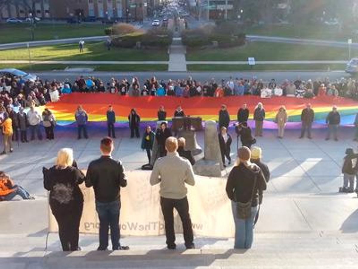 Hundreds of people gathered at the Idaho statehouse in Boise Tuesday to demand that state legislators ensure that LGBT people are added to existing antidiscrimination policies.