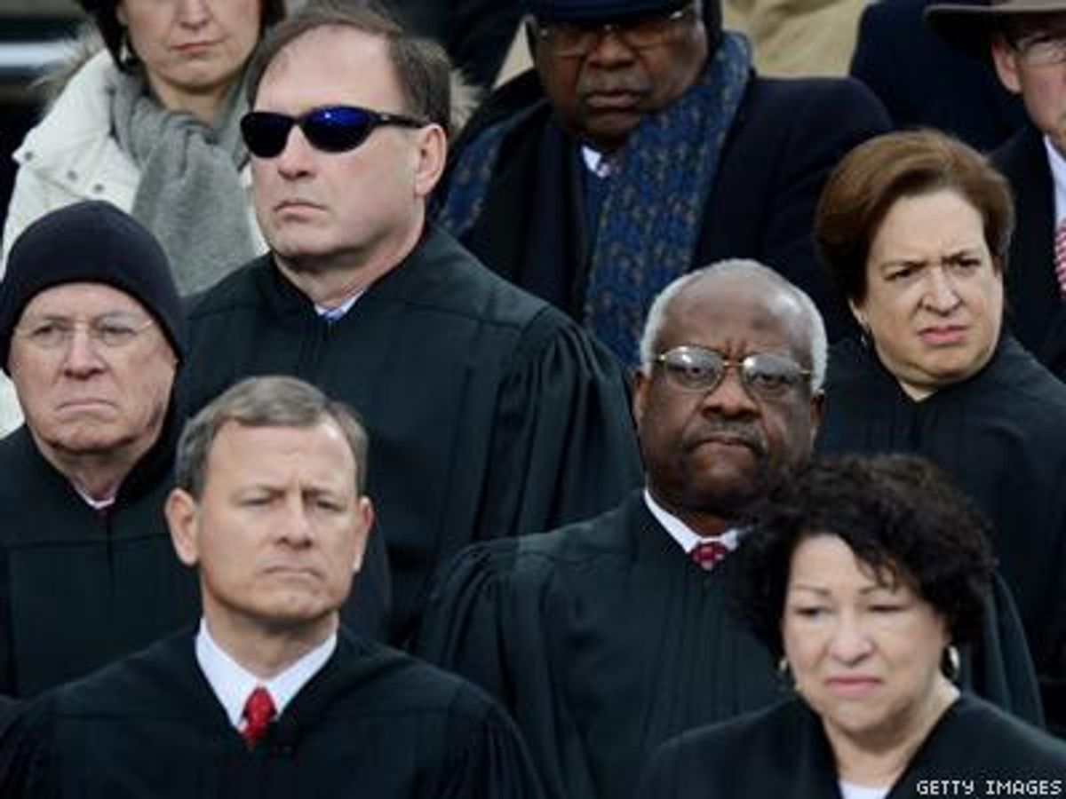In their questioning of Clement and government lawyer Donald Verrilli, the ideological divide of the justices was fairly clear, according to various news sources. The Wire reports, "Justices Scalia, Alito, and Thomas (we assume), were broadly sympathetic to the challengers' arguments, while the three female justices -- Kagan, Sotomayor, and Ginsburg were sympathetic to the government's case. The trio dominated questioning during the challengers' oral arguments. Assuming Breyer votes with the liberal wing and Roberts goes with the conservatives, that leaves Kennedy as a key swing vote." The Wire also has a transcript of today's arguments.