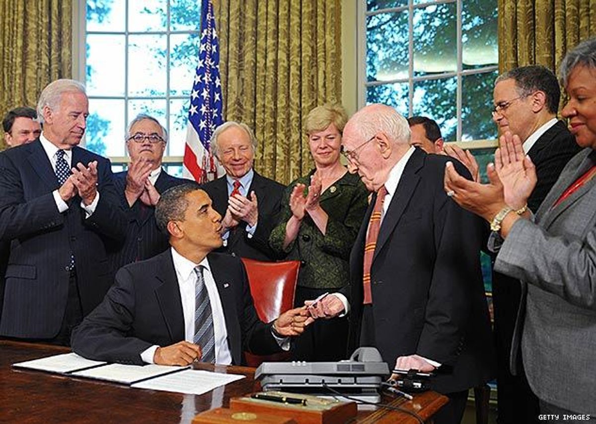 Above: President Bush presents William Safire the 2006 President Medal of Freedom.