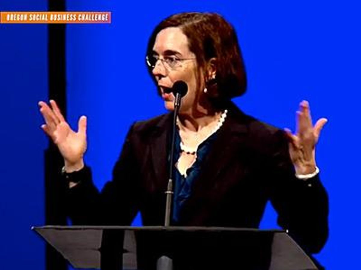 She added, "I pledge to you today that for as long as I am your governor, I will not seek or accept any outside compensation, from any source. And I pledge further that while I am governor the members of my household and the members of my staff will not seek or accept any outside compensation, from any source, for any work related to the business of the state of Oregon. That simply will not happen."