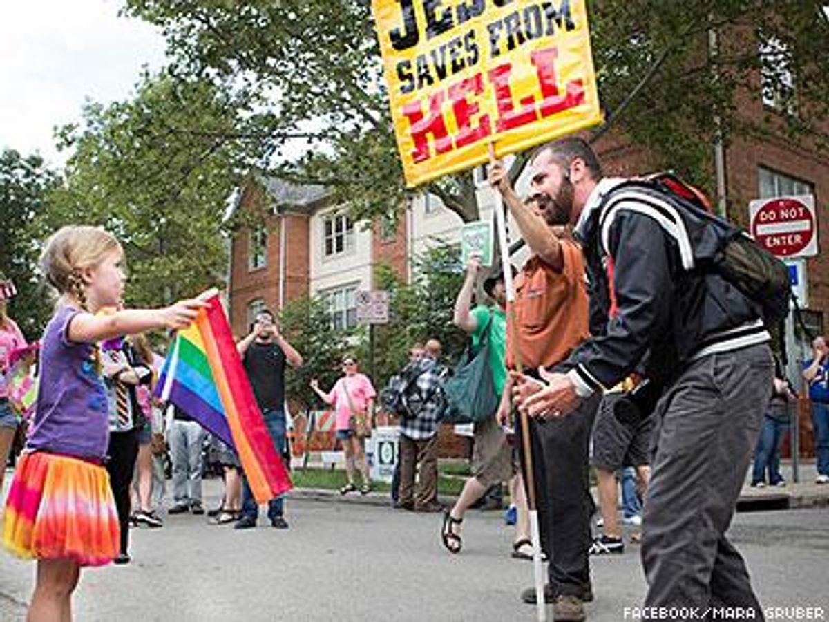 Seven-year-old Zea was recorded on video at ComFest in Columbus, which she attended along with her father. The annual music and arts festival turned into an informal, impromptu Pride celebration, following the marriage equality decision on Friday, to the chagrin of some homophobes who targeted the event for hate.