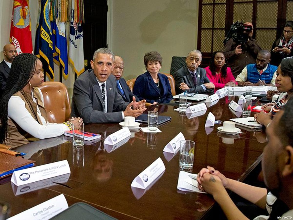 Mckesson tweeted that he and the president were joined by Obama Administration senior adviser Valerie Jarrett, U.S. Attorney General Loretta Lynch, acting assistant attorney general in charge of civil rights investigations Vanita Gupta, Obama senior adviser Cecilia Munoz, White House counsel Neil Eggleston and urban affairs director Roy Austin. Also present were Bernice King, daughter of Rev. Dr. Martin Luther King, Jr., and two of MLK's cohorts, the Rev. C.T. Vivian and Rep. John Lewis of Georgia. University of Missouri student organizer DeShaunya Ware, NAACP president Cornell Brooks and Rev. Al Sharpton also attended.