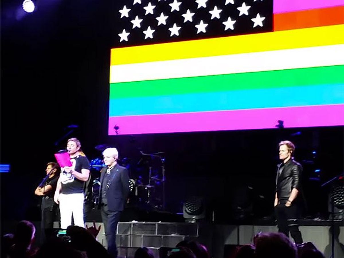 The band encouraged fans who support LGBT rights to register to vote and sign a petition against the bill. Le Bon invited a member of Equality North Carolina to the stage as they signed the petition. He said the document that will be presented at a meeting of the state General Assembly April 25.