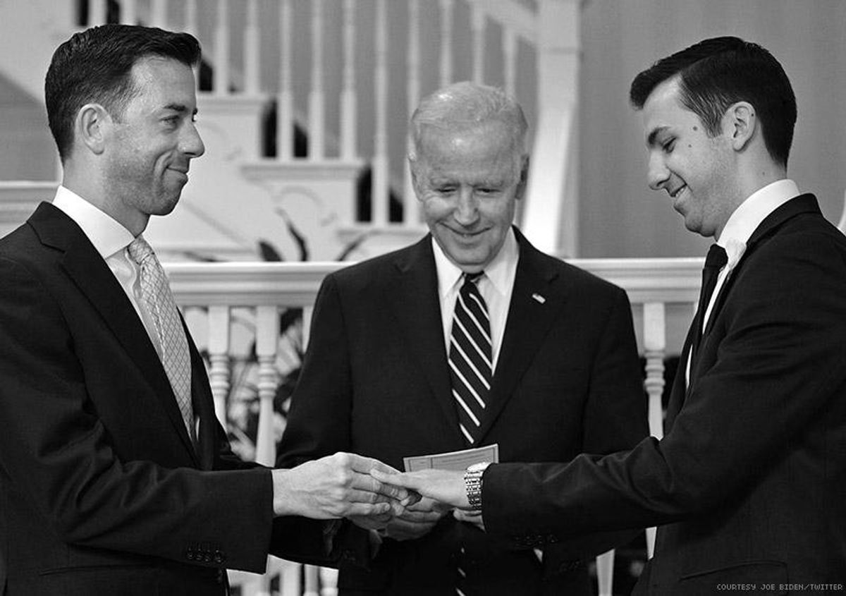 The vice president once again showed LGBT allies how to model support. This time, he tweeted a photo on Tuesday taken when he officiated the wedding of two men who were White House staffers. The internet went wild for the image, taken when Brian Mosteller, director of Oval Office operations, and Joe Mashie, a trip coordinator for the first lady, got hitched at a ceremony held at Biden's own home. They reportedly asked the vice president for the honor.