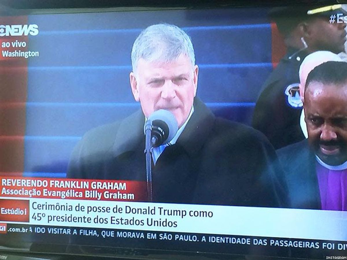 The inauguration itself featured five Christian clergy members and one Jewish one, and most of the Christians prayed in the name of Jesus, something that those who give inaugural prayers usually avoid, striving for an inclusive approach. And in his benediction, the infamously anti-LGBT Rev. Franklin Graham read a Bible verse asserting that Jesus is the "one mediator" between God and humanity. This came immediately after the appearance of the one Jewish clergy member, Rabbi Marvin Hier, dean and founder of the Simon Wiesenthal Center.