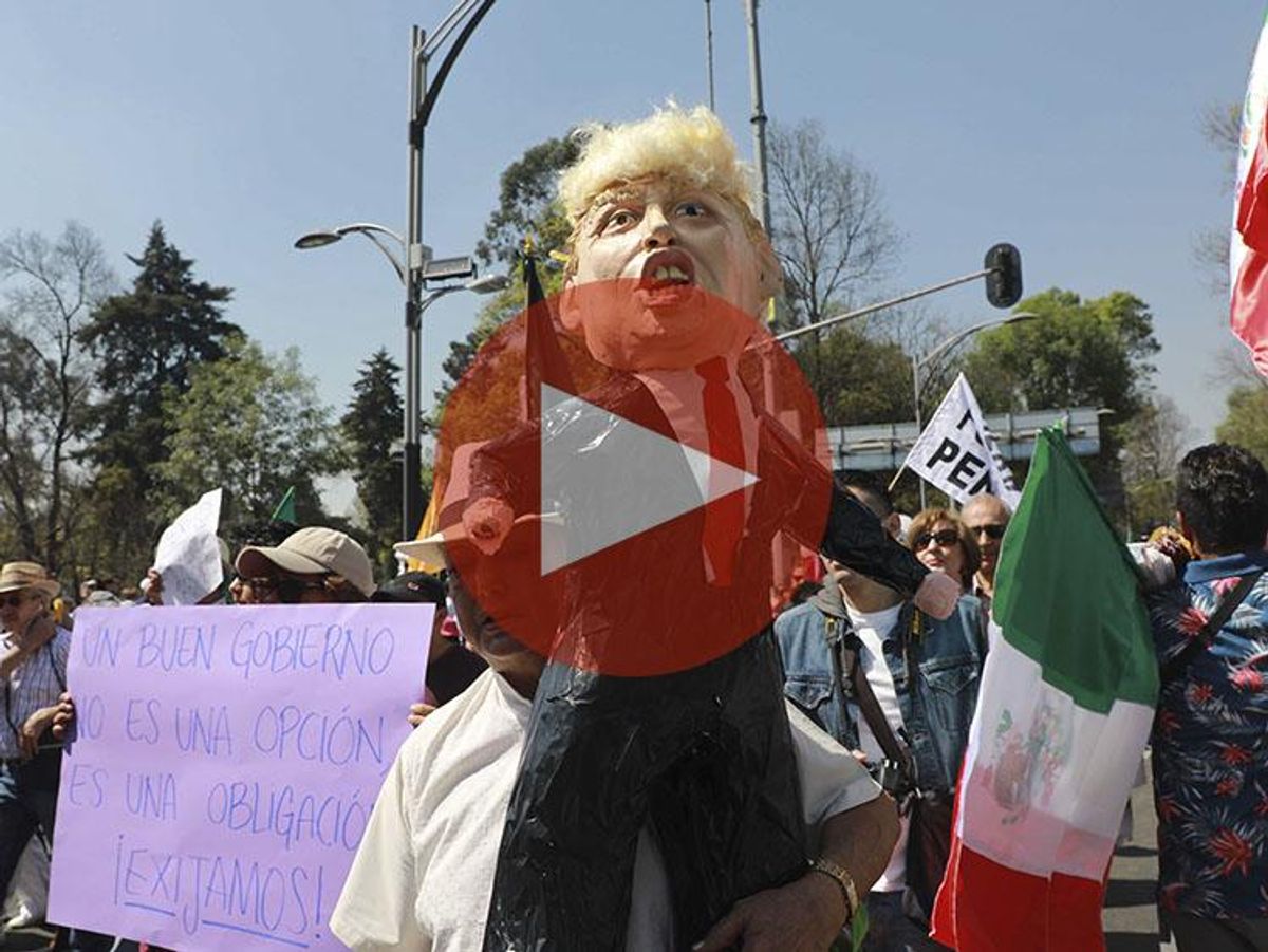 Thousands of demonstrators in a dozen cities across the nation marched Monday, carrying signs and chanting "Mexico!" in a uncommon display of unity against President Donald Trump.