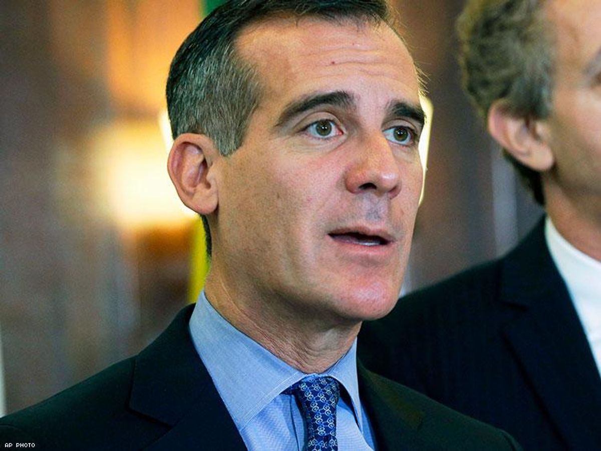 Los Angeles Mayor Eric Garcetti said he plans to do "everything in my power to make sure that Angelenos' tax dollars are never spent to support bigotry based on sexual orientation and gender identity."
