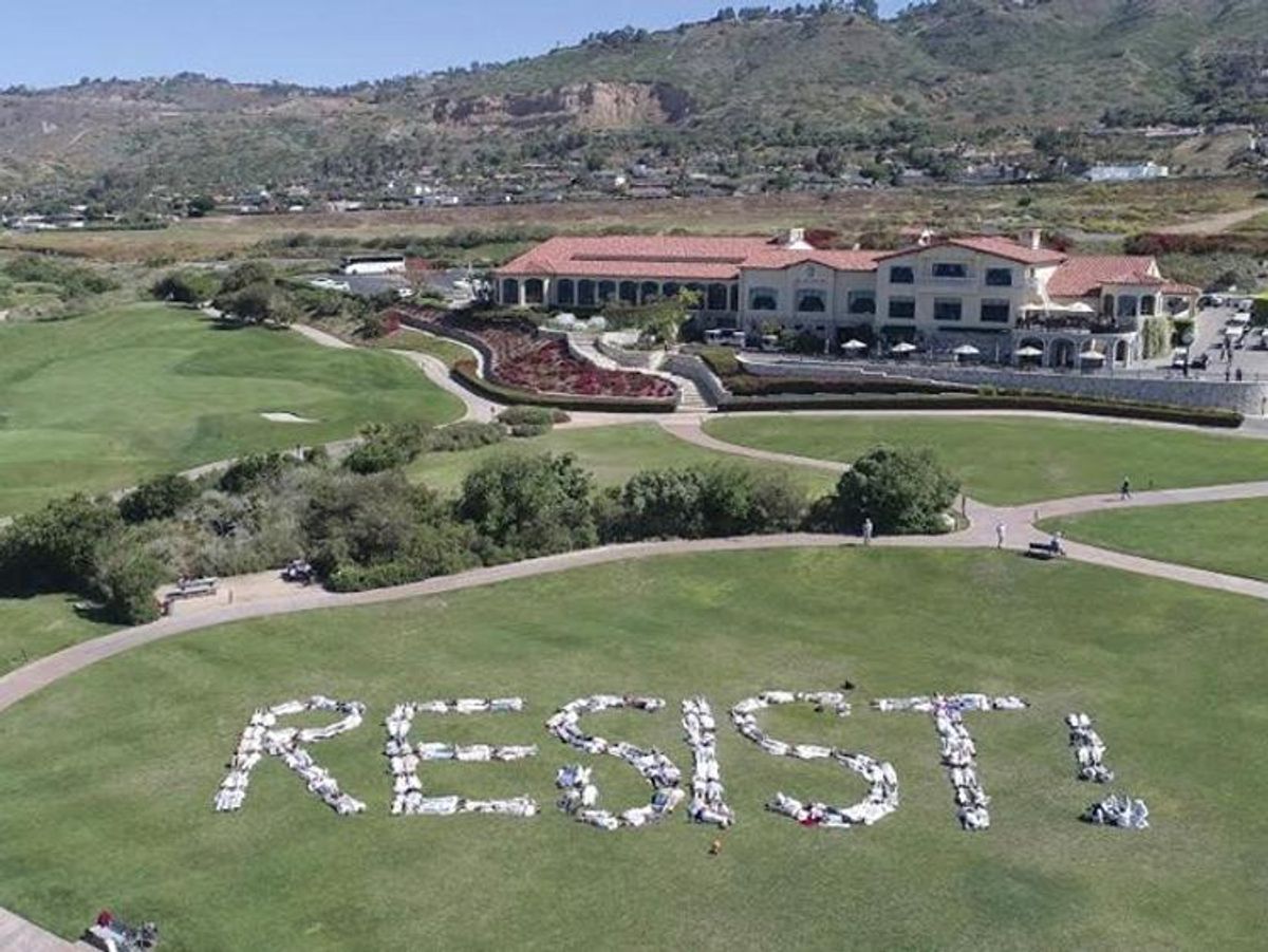 Sheriff's deputies and employees of the Trump National Golf Course in Rancho Palos Verdes, Calif., -- just south of Los Angeles -- didn't intervene when hundreds of protesters formed the word "Resist!" on Saturday.