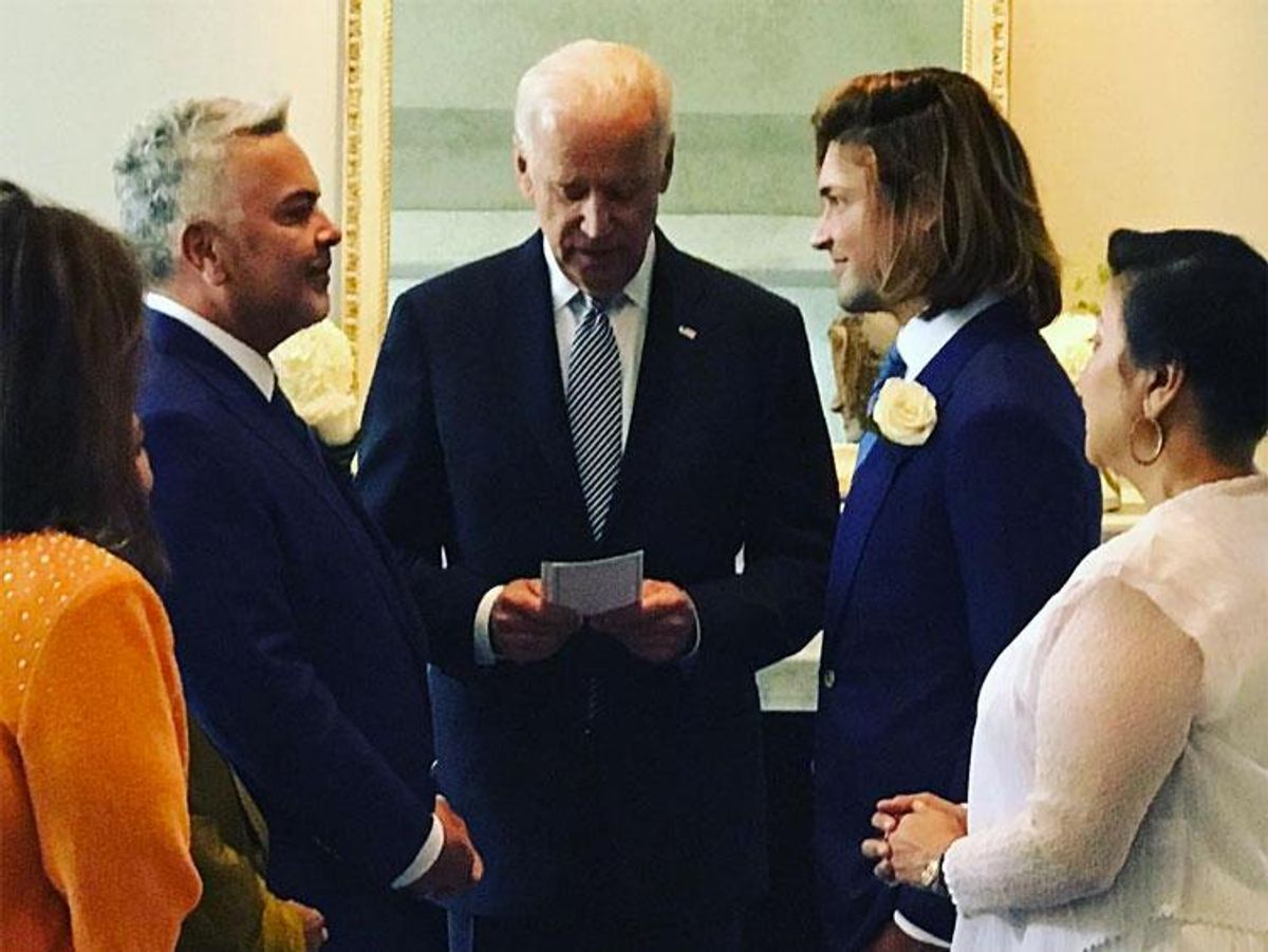 Meanwhile, as the campaign was in full swing in August 2016, Biden shared a photo of him officiating the wedding of Brian Mosteller, director of Oval Office operations, and Joe Mashie, a trip coordinator for the first lady, in a ceremony held at Biden's own home. "Love is love," he wrote on Twitter.
