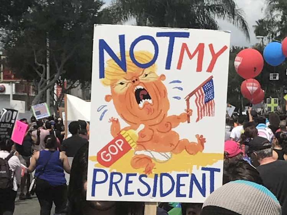"He's not my president. He's not your president!" Democratic Congresswoman Maxine Waters of California told the L.A. crowd at a rally that capped the Resist March, held this year in lieu of the city's traditional Pride parade. The march traced a route from Hollywood to West Hollywood. Waters also led attendees in a chant of "Impeach 45!" Trump is the 45th U.S. president.