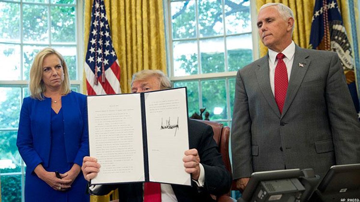 Bowing to immense political pressure, President Trump signed an executive order Wednesday that walked back his policy of separating families at the border.