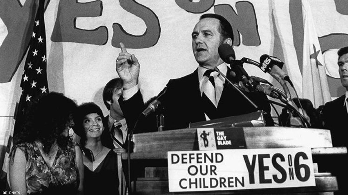 This amount of progress pales in comparison with that of the 21st century, which brought nationwide marriage equality, many more antidiscrimination laws, and, for a time, a president who wholeheartedly supported LGBTQ equality. But just as the Trump administration and other anti-LGBTQ forces are trying to undo civil rights progress today, homophobes came out of the woodwork to try to strip away the advances of the 1970s. The Briggs Initiative was part of this backlash, as was Anita Bryant's campaign to repeal the Miami-Dade County gay rights law. But where she succeeded, Briggs would fail.