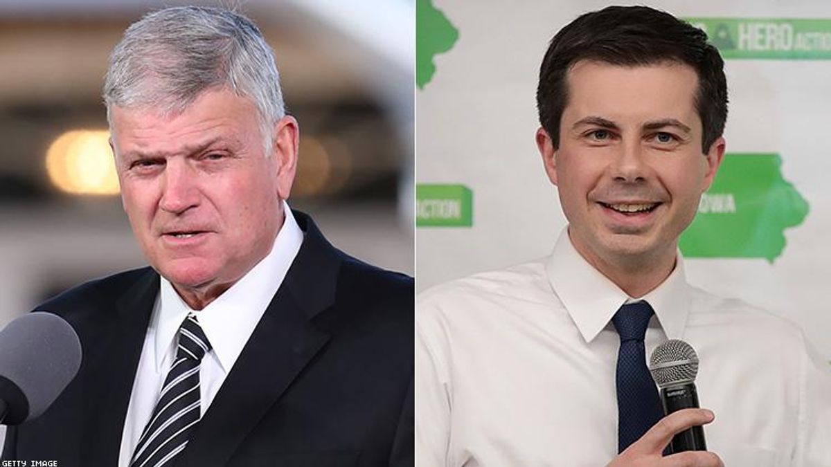 On the campaign trail, presidential aspirant Pete Buttigieg has made clear he's not only a married gay man, a Democrat, and a mayor, but a Christian. His talk about his faith, though, is now getting some blowback from a leader of the antigay Christian right, Franklin Graham.
