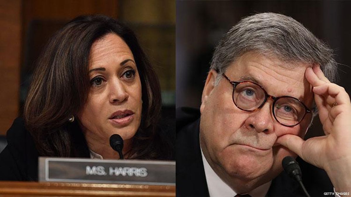 Watch Sen. Kamala Harris Eat Attorney General William Barr for Lunch