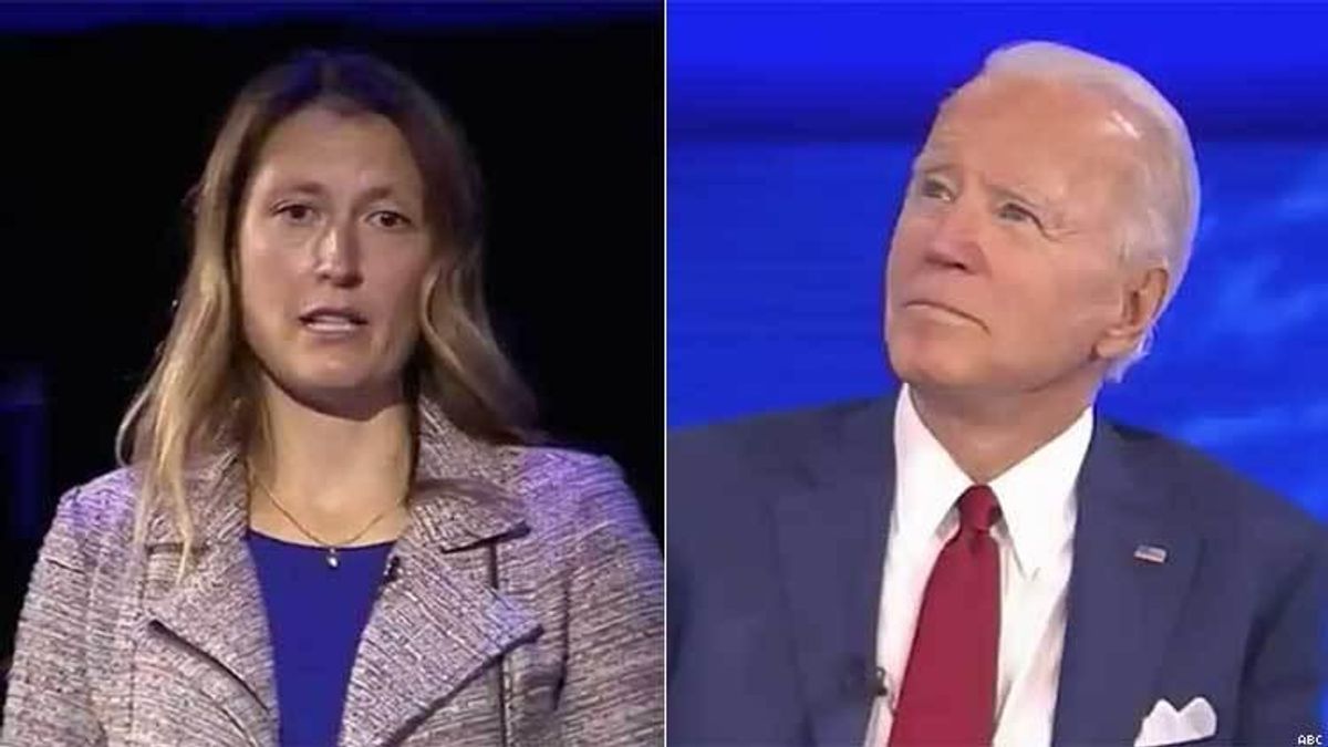 "The Trump administration has attacked the rights of transgender people, banning them from military service, weakening nondiscrimination protections, and even removing the word transgender from some government websites," said Mieke Haeck, a physical therapist from State College, Pa. "How will you, as president, reverse this dangerous and discriminatory agenda and ensure that the lives and rights of LGBTQ people are protected under U.S. law?"