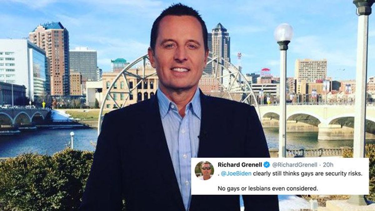 In a Tuesday tweet, Richard Grenell supposed that Biden "still thinks gays are security risks" since he chose the California senator instead of, say, Mayor Pete Buttigieg or Sen. Tammy Baldwin.