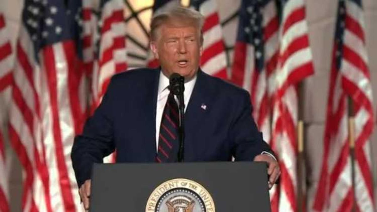 Donald Trump's speech, which lasted 70 minutes, contained many of the falsehoods that were heard from other speakers throughout the convention: that Biden supports defunding the police (he doesn't -- he is for reforms but would increase funding for community policing); that the military was depleted under President Obama's administration, in which Biden was vice president (it wasn't); that the U.S. has achieved energy independence (no); and that Trump's response to the COVID-19 pandemic has been appropriate and exemplary, when nearly 180,000 people have died.