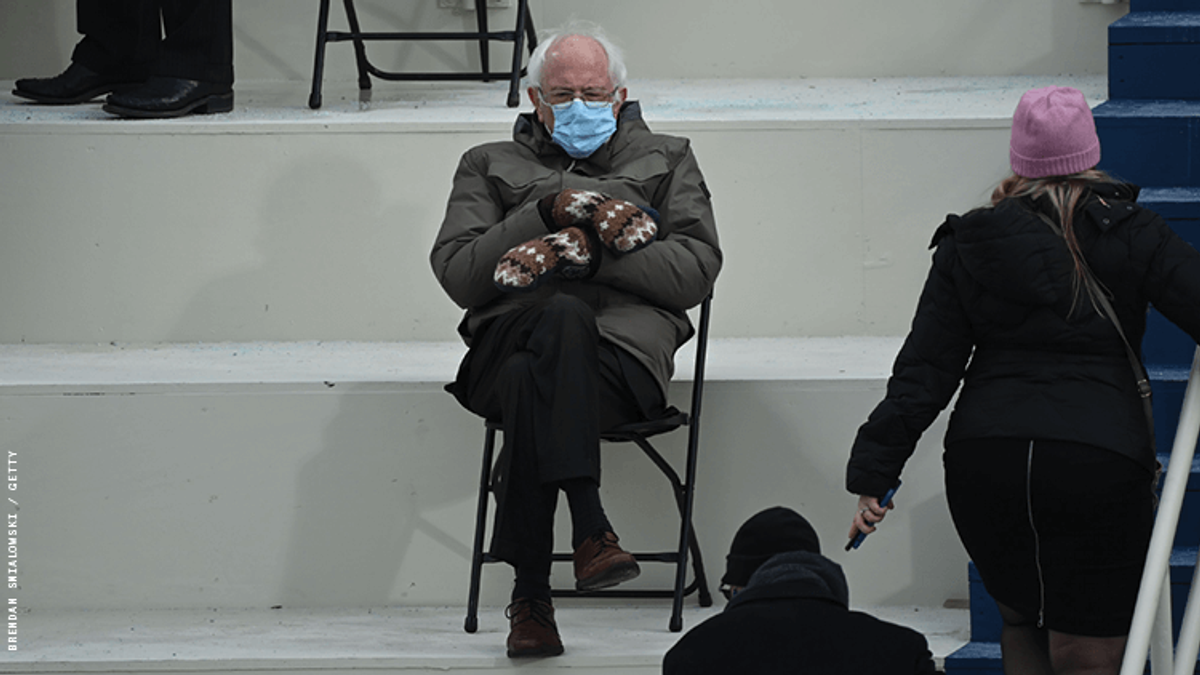 That's when she saw the camera zoom in on Sanders and the mittens she had made for him. "I was like, there he is, he's wearing my mittens. I was completely surprised and delighted and flattered and good for him."