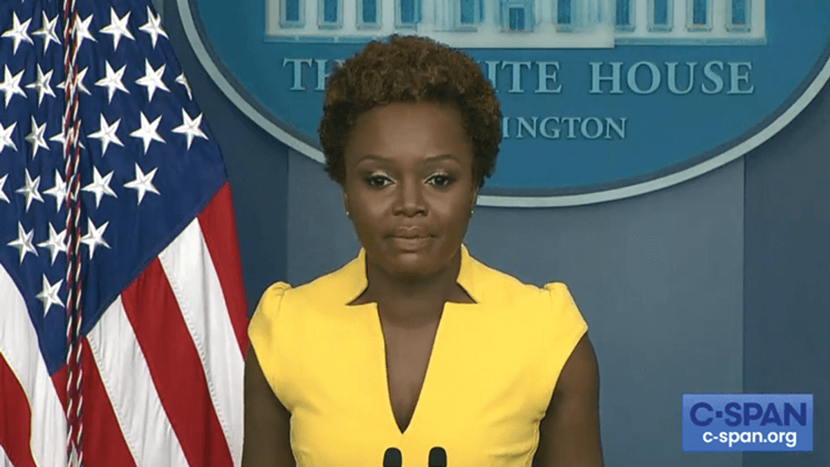 Jean-Pierre, filling in for White House press secretary Jen Psaki, was the first openly LGBTQ+ person to ever lead a press briefing (she's a lesbian) and the first Black woman to address the White House press corps in three decades.