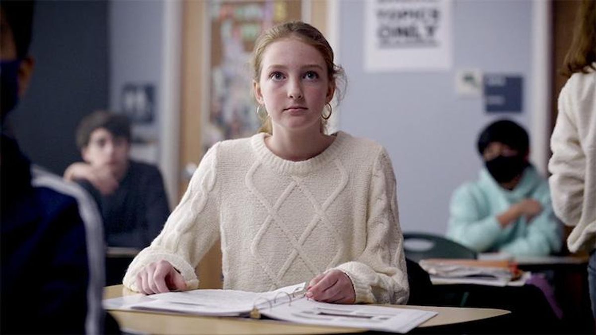 In the commercial that premiered Monday, a student goes up to present a paper on her heroes: her two moms. However, when she refers to her moms, an alarm buzzes. Her teacher tells her to continue and to be proud. It ends with an announcer calling for the teacher to head to the principal's office.