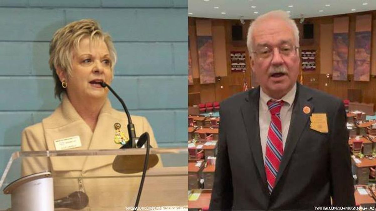 Pictured: Backers of anti-trans legislation Sen. Julie Daniels of Oklahoma and Sen. John Kavanagh of Arizona