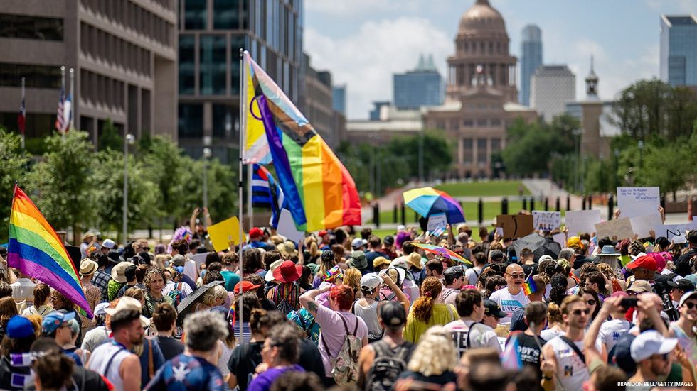 In Texas, hundreds of protesters gathered Saturday and marched to the state capitol in Austin. The Texas Senate has approved bills that would ban gender-affirming care for trans youth, restrict discussion of LGBTQ+ topics in schools, bar trans college athletes from competing under their gender identity, and withhold funds from public libraries that host drag queen story hours.