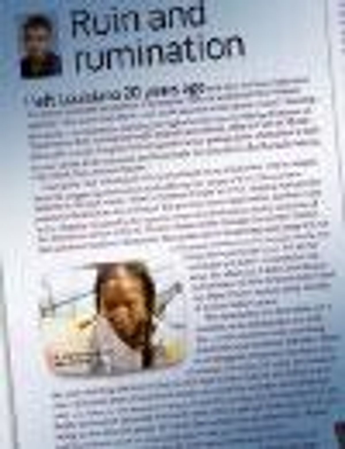 The devastation of a hurricane--or a tsunami, or an earthquake, or a wildfire--is just statistics until something punctures your emotional defenses. Masses of struggling humanity may leave you awestruck but unmoved, while the image of one man clutching the beloved dog he can't bear to leave behind will reduce you to sobs. Helicopter shots of inundated streets may look like so much alien landscape until you listen to one amazing woman named Charmaine Neville describe how she barely survived for days and eventually stole a bus to get her loved ones out of town, crying as she drove by people for whom there simply was no more room.