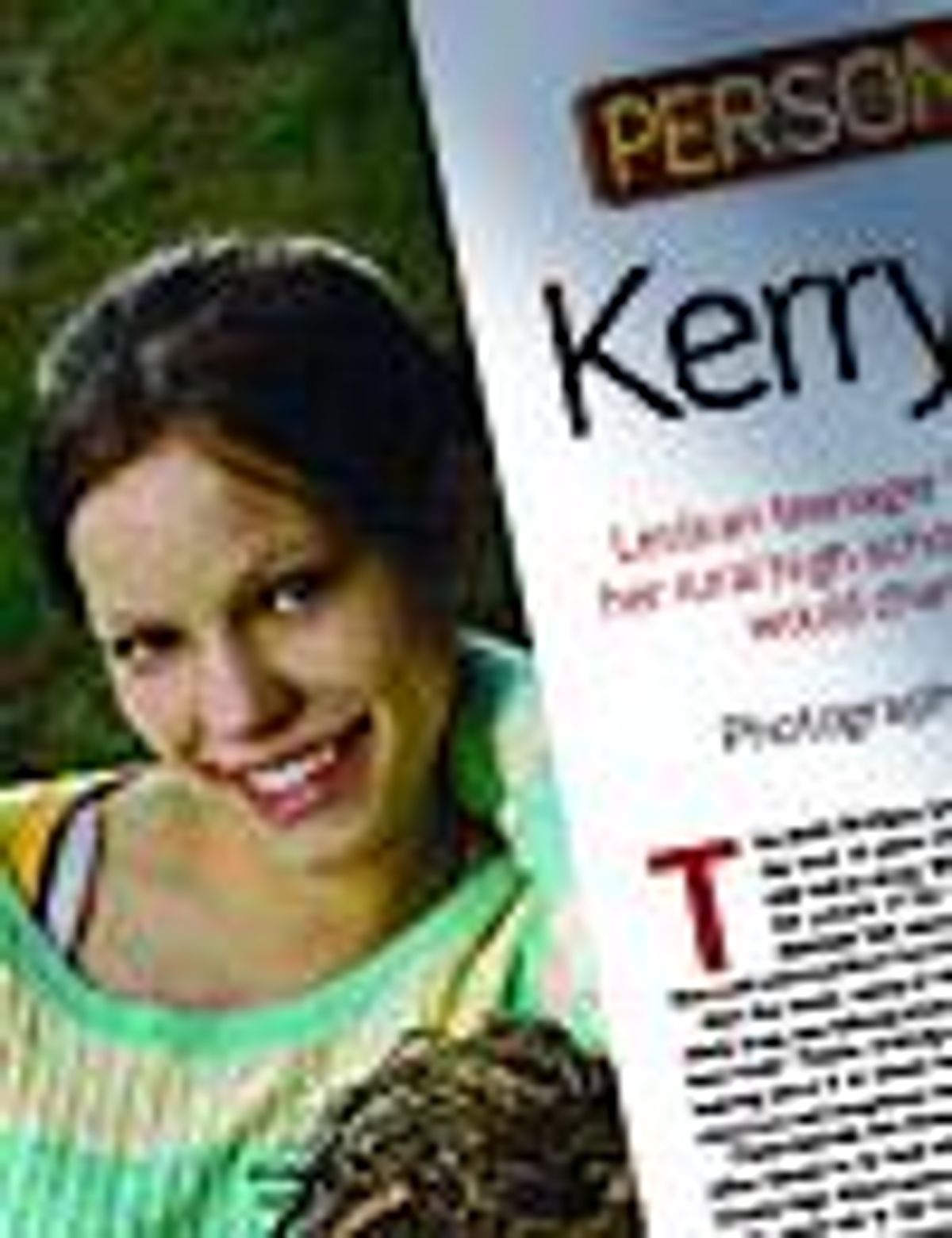 That's because one courageous and feisty young girl refused to allow herself to be kept silent. Kerry Pacer, a 17-year-old White County High School senior with soft brown eyes and a charismatic smile, came out to the town earlier this year by demanding that she and her gay classmates be protected from harassment. "It's my chance right now to step in and say we're going to get treated fairly," she says. "If I give up that chance, I might never have it again."