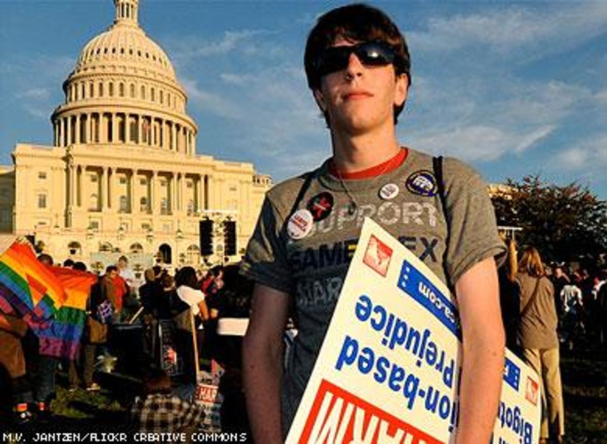 That same week we got the news from the highest-ranking openly gay official, John Berry in the Office of Personnel Management, that the White House is talking to Joe Lieberman about leading the repeal of DADT We're hearing that it might happen next spring. There's also buzz that the Employment Non-Discrimination Act will be voted on in House by year's end and signed by the beginning of next year, on the heels of the hate-crimes bill's passage. And after The Advocate inquired about antigay ballot measures in Maine and Washington, the White House put out a statement condemning antigay referenda (They didn't mention the two states specifically, again being very reticent, but still, we can use this statement to our advantage).