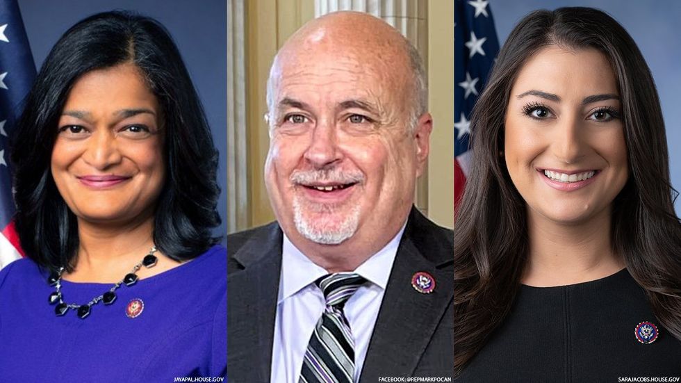 Pictured, from left: U.S. Reps. Pramila Jayapal, Mark Pocan, and Sara Jacobs