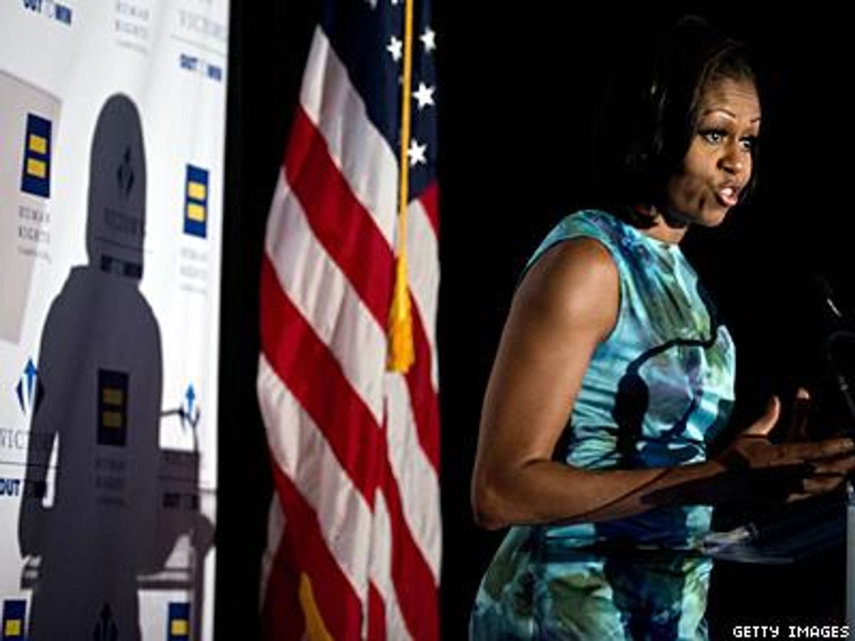 Michelle Obama spoke to an estimated 500 guests Wednesday during a luncheon sponsored by the Human Rights Campaign and the Victory Fund at the Democratic National Convention in Charlotte, North Carolina. The First Lady showed her "mom face" and urged attendees to do everything they can to help re-elect President Barack Obama in what is expected to be perhaps the closest election in history.