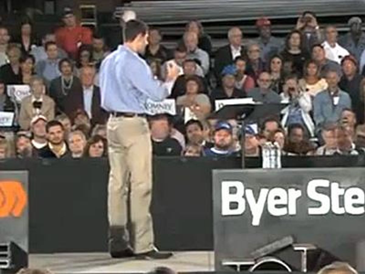 Mitt Romney's running mate Paul Ryan was asked about his stance on marriage equality at a rally, where he suggests that only heterosexual marriage is an American value.