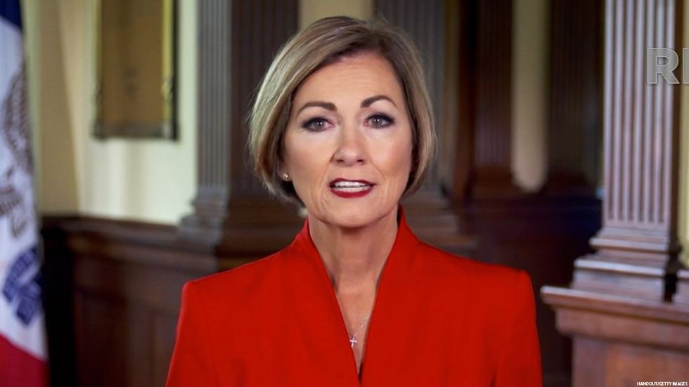 Republican Gov. Kim Reynolds signed a bill into law Wednesday that prohibits the provision of gender-affirming surgeries, puberty blockers, and hormone treatment to trans minors, The Des Moines Register reports. She also signed a bill that bars trans students in public schools from using the restrooms and locker rooms matching their gender identity and requires them to get parental consent before seeking other accommodations, such as single-user restrooms.