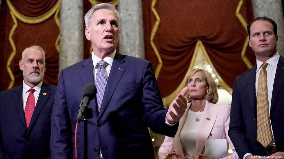 Pictured, from left: Republican U.S. Reps. Ryan Zinke, Kevin McCarthy, Claudia Tenney, and August Pfluger