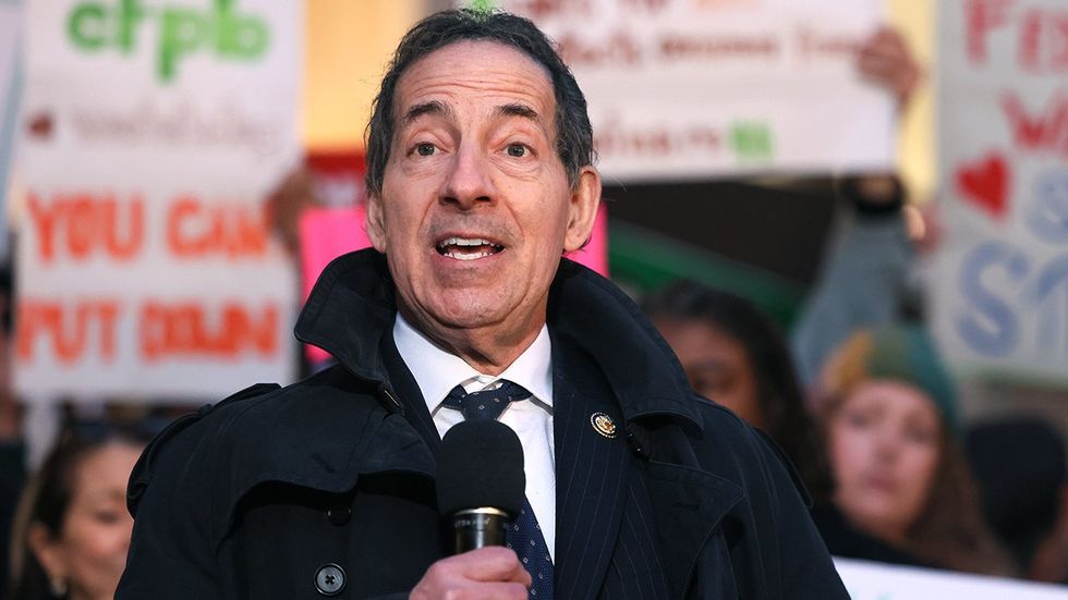 Rep. Jamie Raskin (D-MD) speaks as Congressional Democrats and CFPB workers hold a rally to protest the closing of the Consumer Financial Protection Bureau (CFPB) and the work-from-home order issued by CFPB Director Russell Vought outside its headquarters on February 10, 2025 in Washington, D.C.