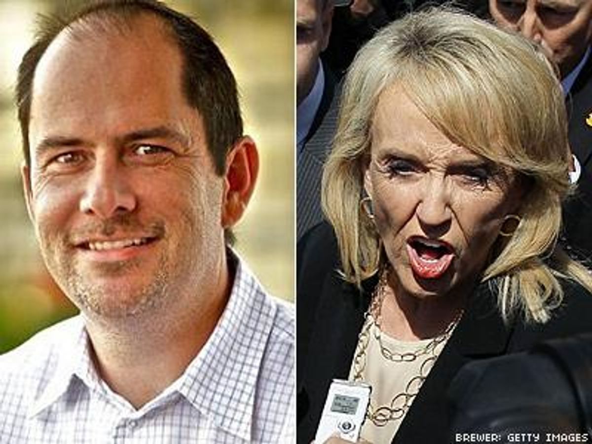 The Arizona Republic reports that Leslie, a hospitality-management company owner, sent a two-page letter to the Republican governor. He argued that her opposition to the benefits hurts the tourism economy while standing "in direct conflict with your reiteration that all Americans are entitled to the same 'inalienable rights,'" as expressed in Brewer's official Independence Day declaration.